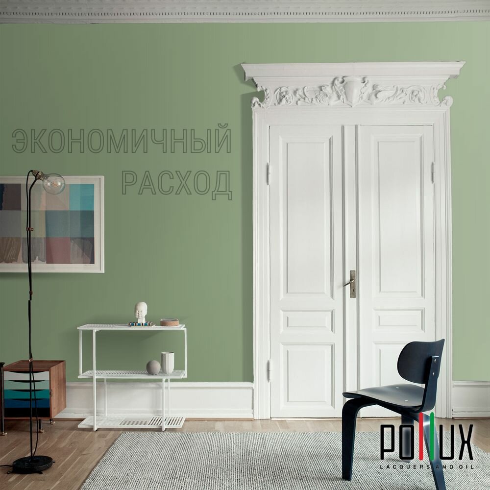 Краска моющаяся интерьерная для стен и потолков, Pollux INTERIOR без запаха, быстросохнущая, акриловая, матовое покрытие, цвет NCS S 4050-G30Y, 1л.