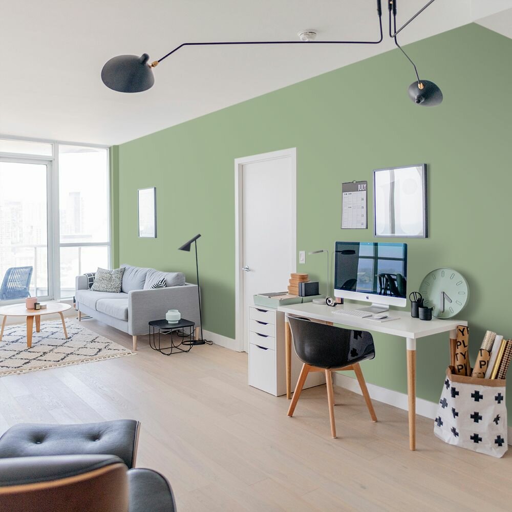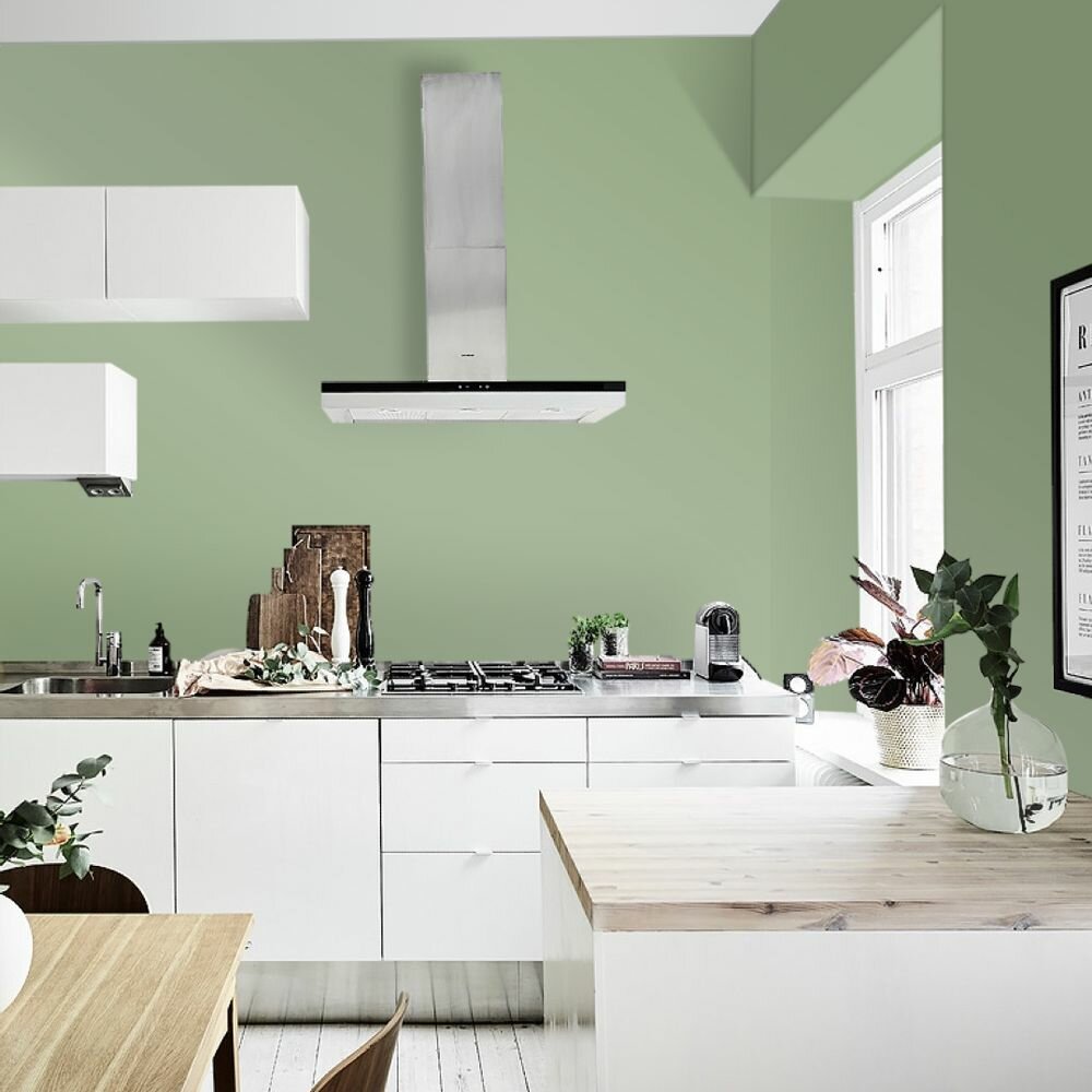 Краска моющаяся интерьерная для стен и потолков, Pollux INTERIOR без запаха, быстросохнущая, акриловая, матовое покрытие, цвет NCS S 6030-G30Y, 1л.