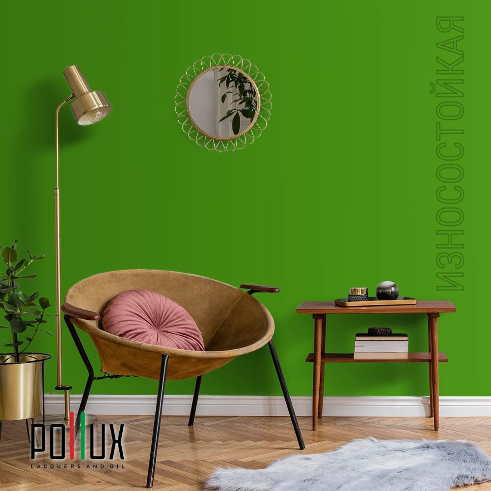 Краска моющаяся интерьерная для стен и потолков, Pollux INTERIOR без запаха, быстросохнущая, акриловая, матовое покрытие, цвет NCS S 1060-G30Y, 1л.