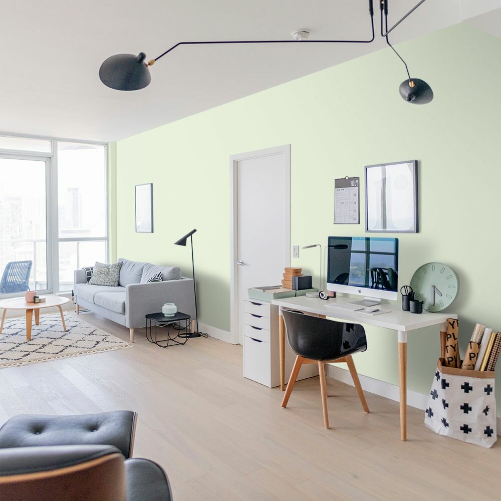 Краска моющаяся интерьерная для стен и потолков, Pollux INTERIOR без запаха, быстросохнущая, акриловая, матовое покрытие, цвет NCS S 0510-G30Y, 1л.