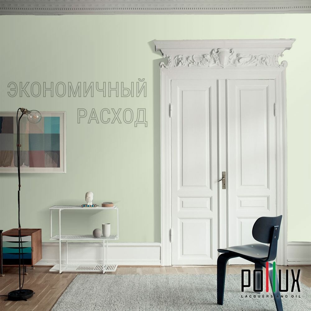 Краска моющаяся интерьерная для стен и потолков, Pollux INTERIOR без запаха, быстросохнущая, акриловая, матовое покрытие, цвет NCS S 1040-G30Y, 1л.