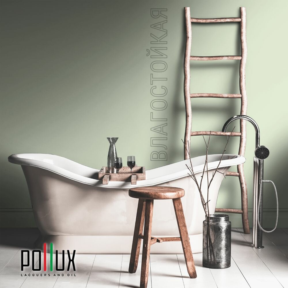 Краска моющаяся интерьерная для стен и потолков, Pollux INTERIOR без запаха, быстросохнущая, акриловая, матовое покрытие, цвет NCS S 8010-G30Y, 1л.