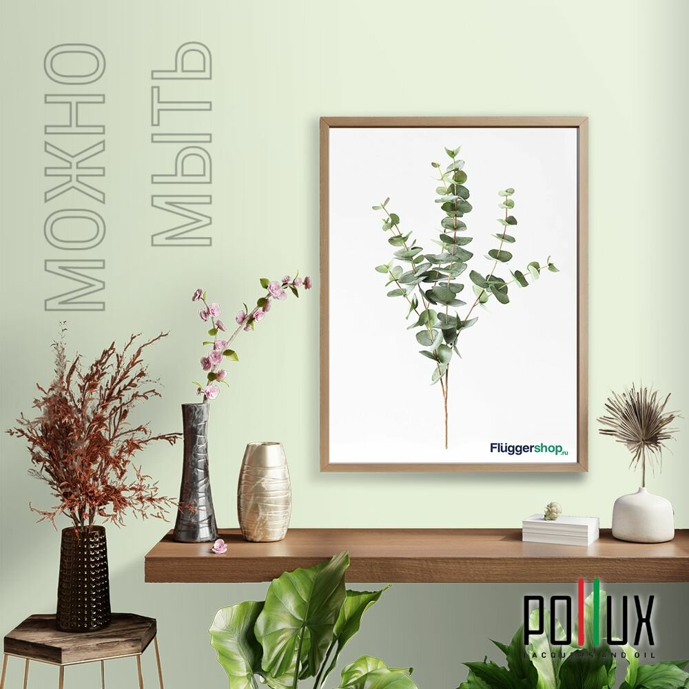 Краска моющаяся интерьерная для стен и потолков, Pollux INTERIOR без запаха, быстросохнущая, акриловая, матовое покрытие, цвет NCS S 5540-G30Y, 1л.