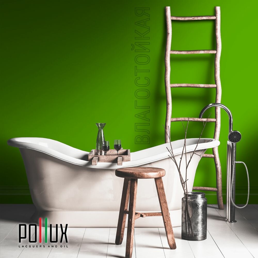 Краска моющаяся интерьерная для стен и потолков, Pollux INTERIOR без запаха, быстросохнущая, акриловая, матовое покрытие, цвет NCS S 2060-G30Y, 1л.