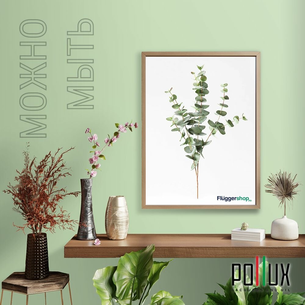 Краска моющаяся интерьерная для стен и потолков, Pollux INTERIOR без запаха, быстросохнущая, акриловая, матовое покрытие, цвет NCS S 5540-G30Y, 1л.
