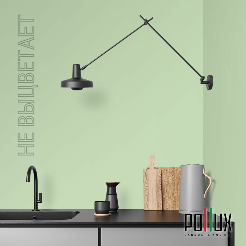 Краска моющаяся интерьерная для стен и потолков, Pollux INTERIOR без запаха, быстросохнущая, акриловая, матовое покрытие, цвет NCS S 6030-G30Y, 1л.