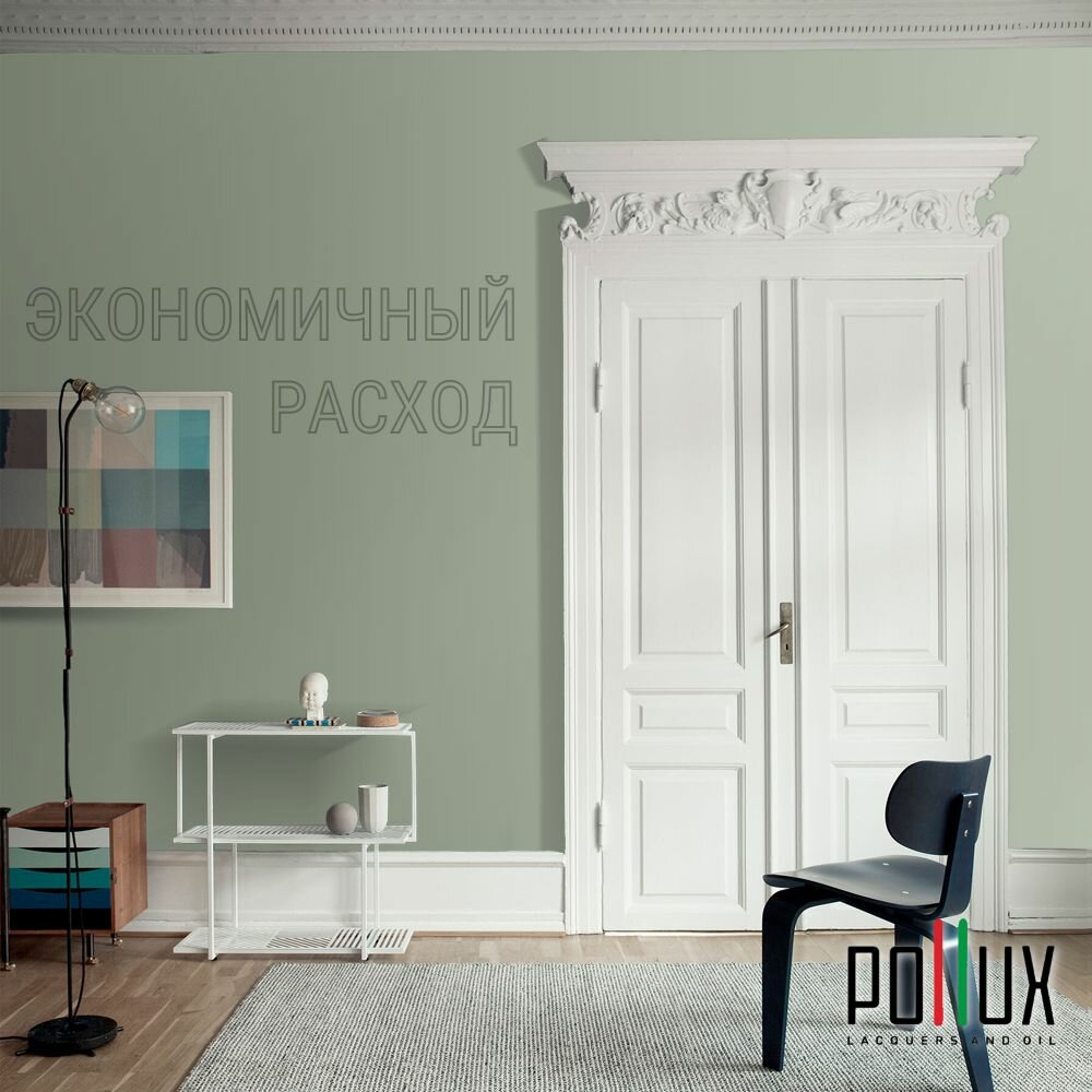 Краска моющаяся интерьерная для стен и потолков, Pollux INTERIOR без запаха, быстросохнущая, акриловая, матовое покрытие, цвет NCS S 4030-G30Y, 1л.