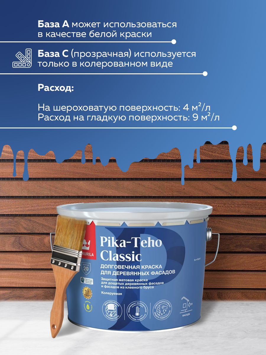 Краска TIKKURILA PIKA TEHO CLASSIC акрилатная для деревянных фасадов, матовая База С 9л