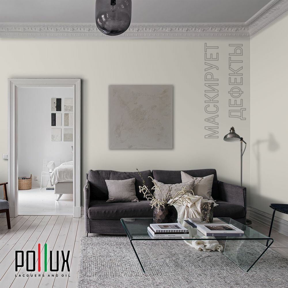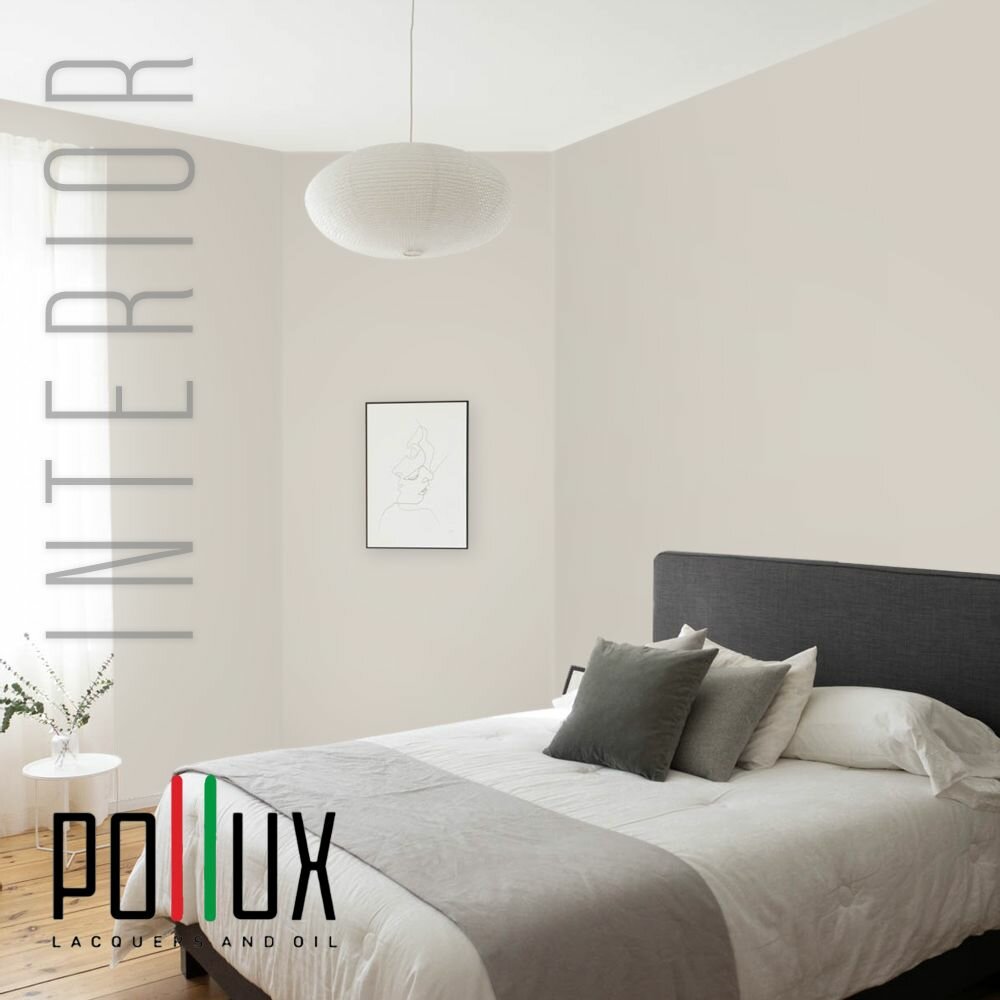 Краска моющаяся интерьерная для стен и потолков, Pollux INTERIOR без запаха, быстросохнущая, акриловая, матовое покрытие, цвет NCS S 7010-Y50R, 1л.