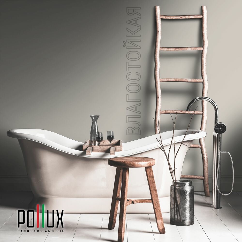Краска моющаяся интерьерная для стен и потолков, Pollux INTERIOR без запаха, быстросохнущая, акриловая, матовое покрытие, цвет NCS S 7005-Y50R, 1л.