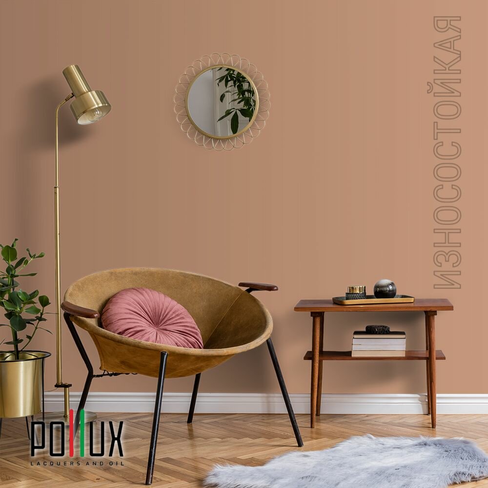 Краска моющаяся интерьерная для стен и потолков, Pollux INTERIOR без запаха, быстросохнущая, акриловая, матовое покрытие, цвет NCS S 0585-Y50R, 1л.