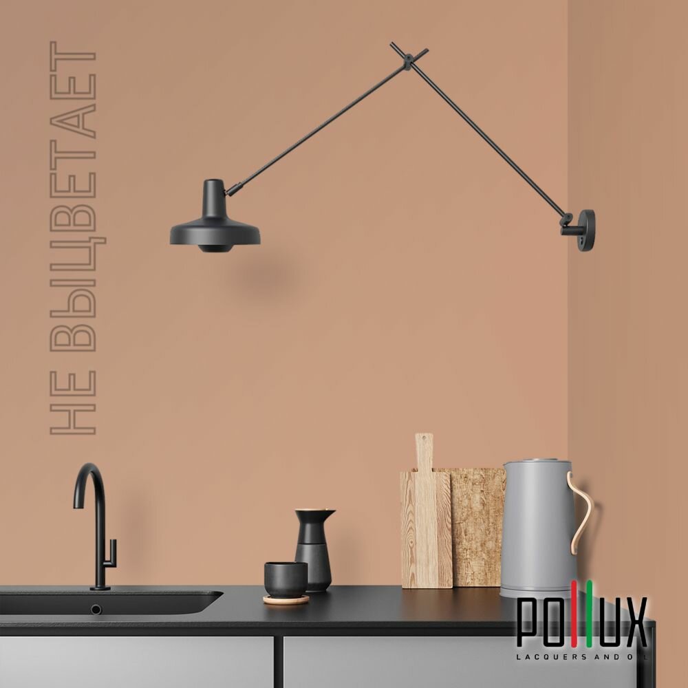 Краска моющаяся интерьерная для стен и потолков, Pollux INTERIOR без запаха, быстросохнущая, акриловая, матовое покрытие, цвет NCS S 2570-Y50R, 1л.