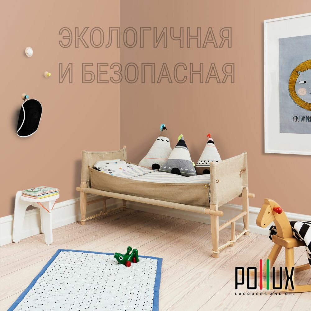 Краска моющаяся интерьерная для стен и потолков, Pollux INTERIOR без запаха, быстросохнущая, акриловая, матовое покрытие, цвет NCS S 1515-Y50R, 1л.