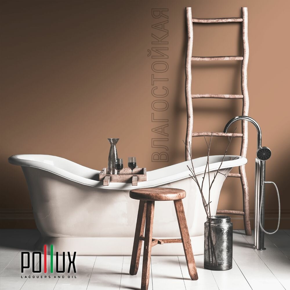 Краска моющаяся интерьерная для стен и потолков, Pollux INTERIOR без запаха, быстросохнущая, акриловая, матовое покрытие, цвет NCS S 8010-Y50R, 1л.