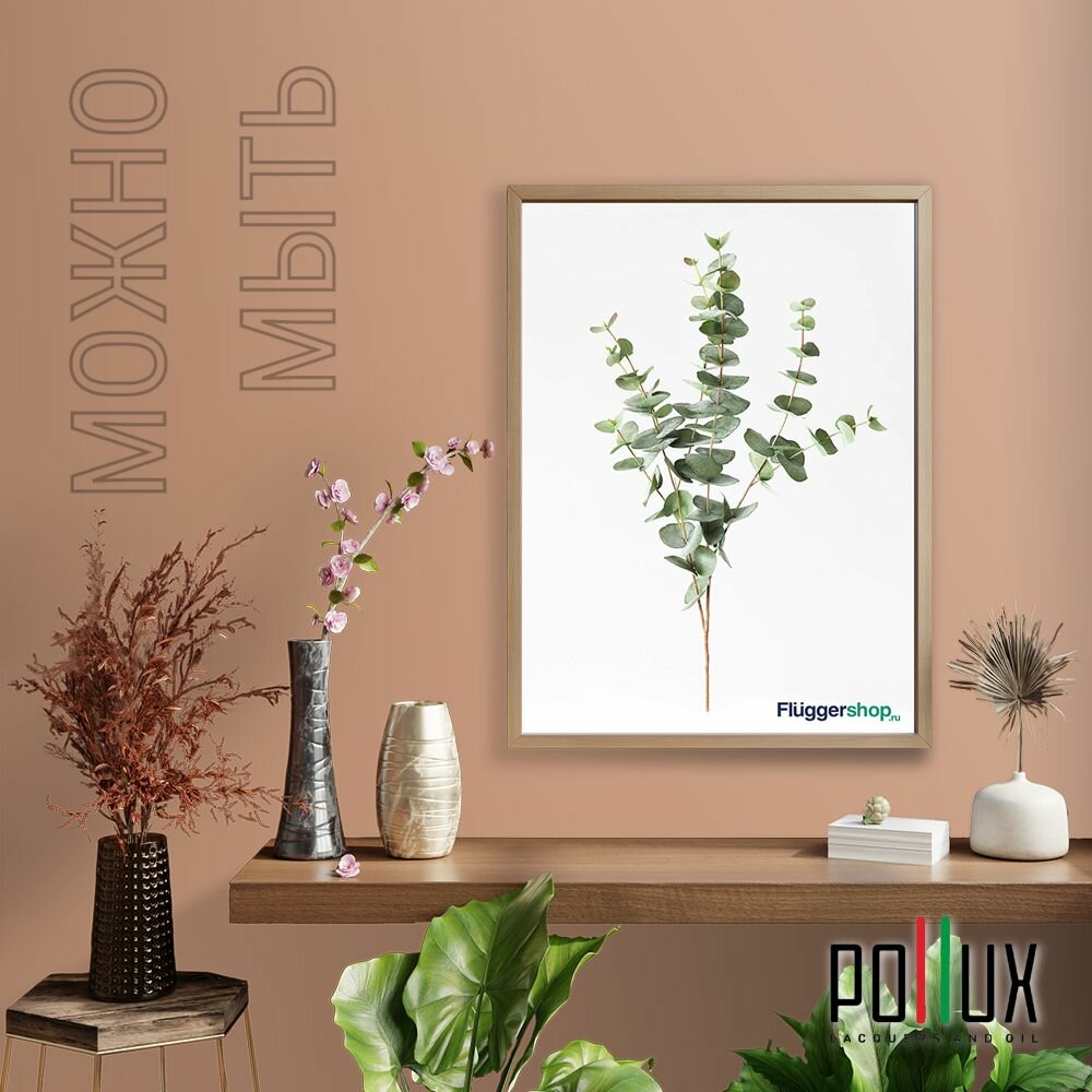Краска моющаяся интерьерная для стен и потолков, Pollux INTERIOR без запаха, быстросохнущая, акриловая, матовое покрытие, цвет NCS S 3060-Y50R, 1л.