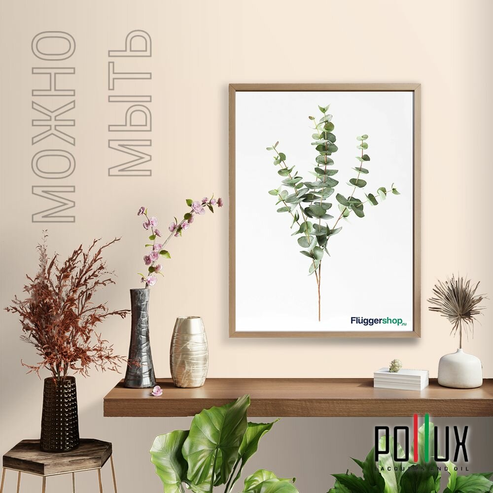 Краска моющаяся интерьерная для стен и потолков, Pollux INTERIOR без запаха, быстросохнущая, акриловая, матовое покрытие, цвет NCS S 7005-Y50R, 1л.