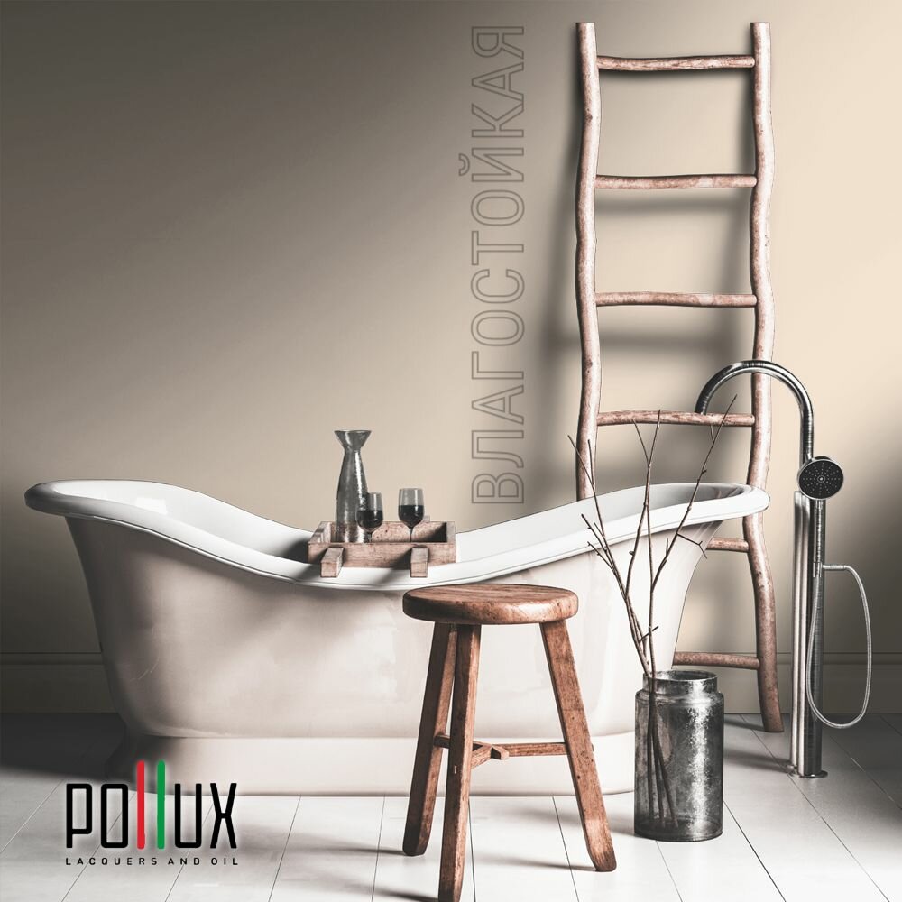 Краска моющаяся интерьерная для стен и потолков, Pollux INTERIOR без запаха, быстросохнущая, акриловая, матовое покрытие, цвет NCS S 7010-Y50R, 1л.