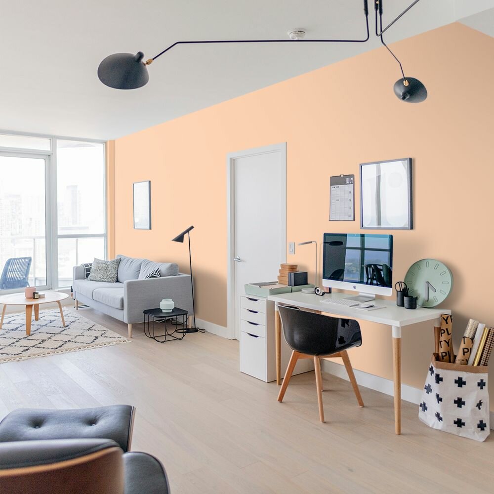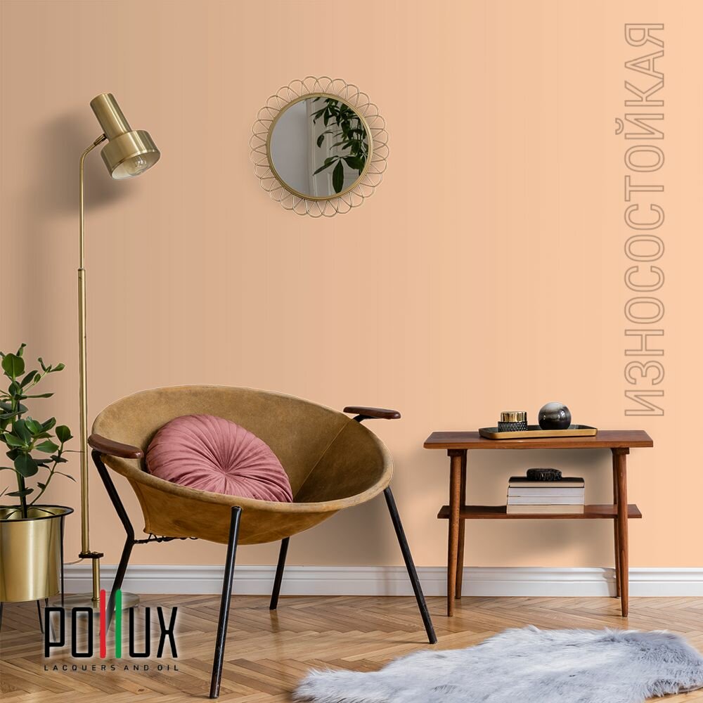 Краска моющаяся интерьерная для стен и потолков, Pollux INTERIOR без запаха, быстросохнущая, акриловая, матовое покрытие, цвет NCS S 0585-Y50R, 1л.