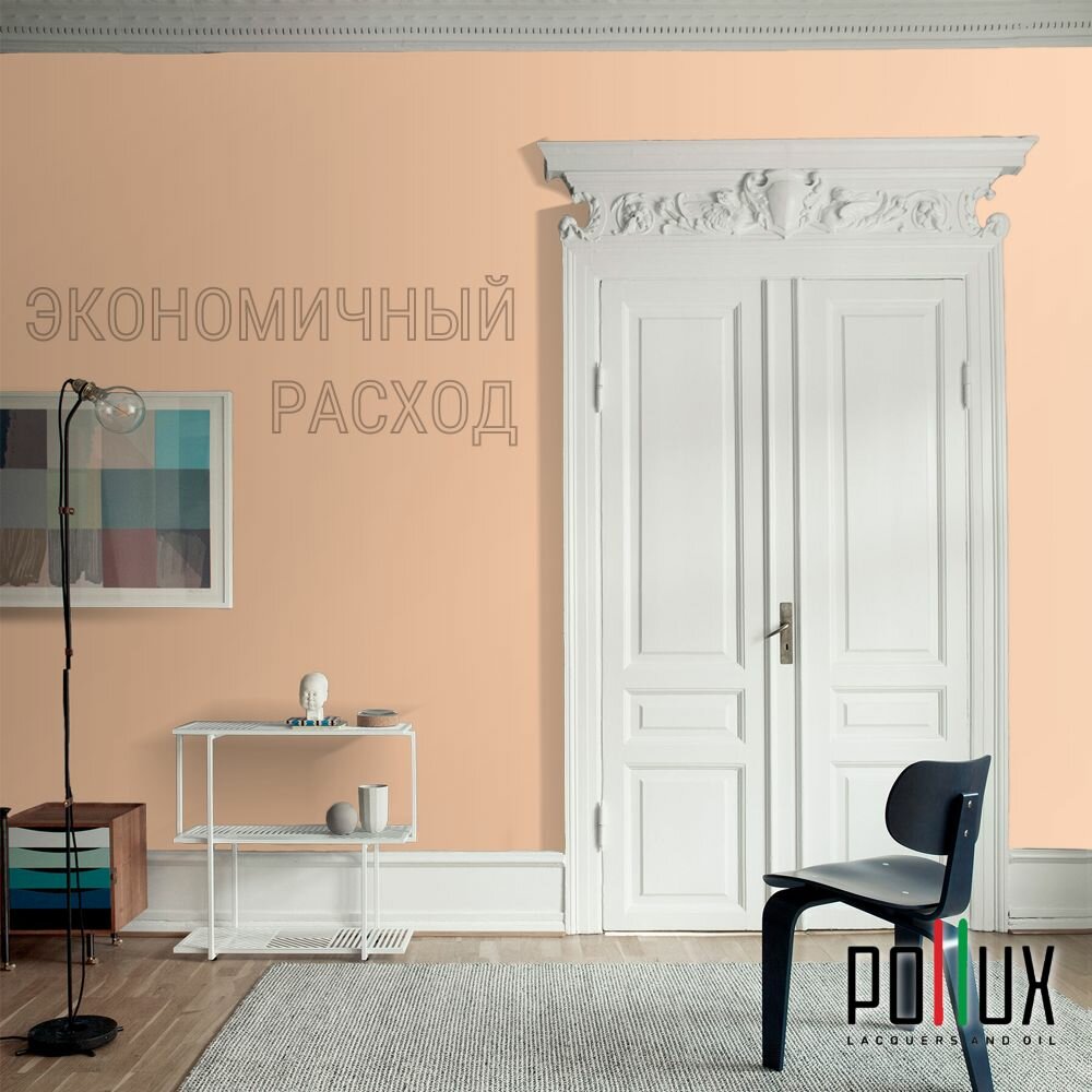 Краска моющаяся интерьерная для стен и потолков, Pollux INTERIOR без запаха, быстросохнущая, акриловая, матовое покрытие, цвет NCS S 1080-Y50R, 1л.
