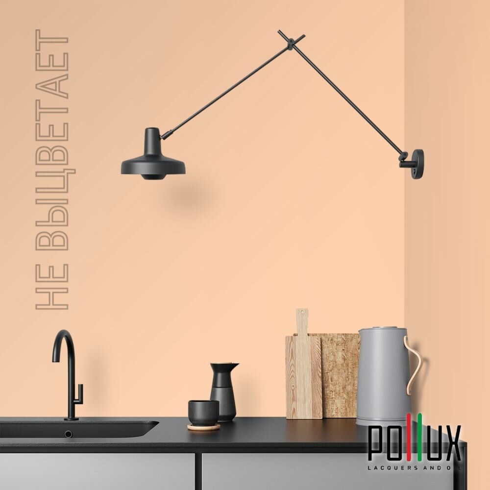 Краска моющаяся интерьерная для стен и потолков, Pollux INTERIOR без запаха, быстросохнущая, акриловая, матовое покрытие, цвет NCS S 3060-Y50R, 1л.