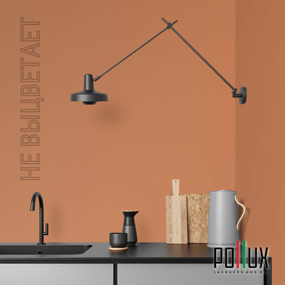 Краска моющаяся интерьерная для стен и потолков, Pollux INTERIOR без запаха, быстросохнущая, акриловая, матовое покрытие, цвет NCS S 3060-Y50R, 1л.