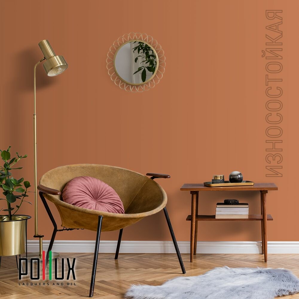 Краска моющаяся интерьерная для стен и потолков, Pollux INTERIOR без запаха, быстросохнущая, акриловая, матовое покрытие, цвет NCS S 0585-Y50R, 1л.