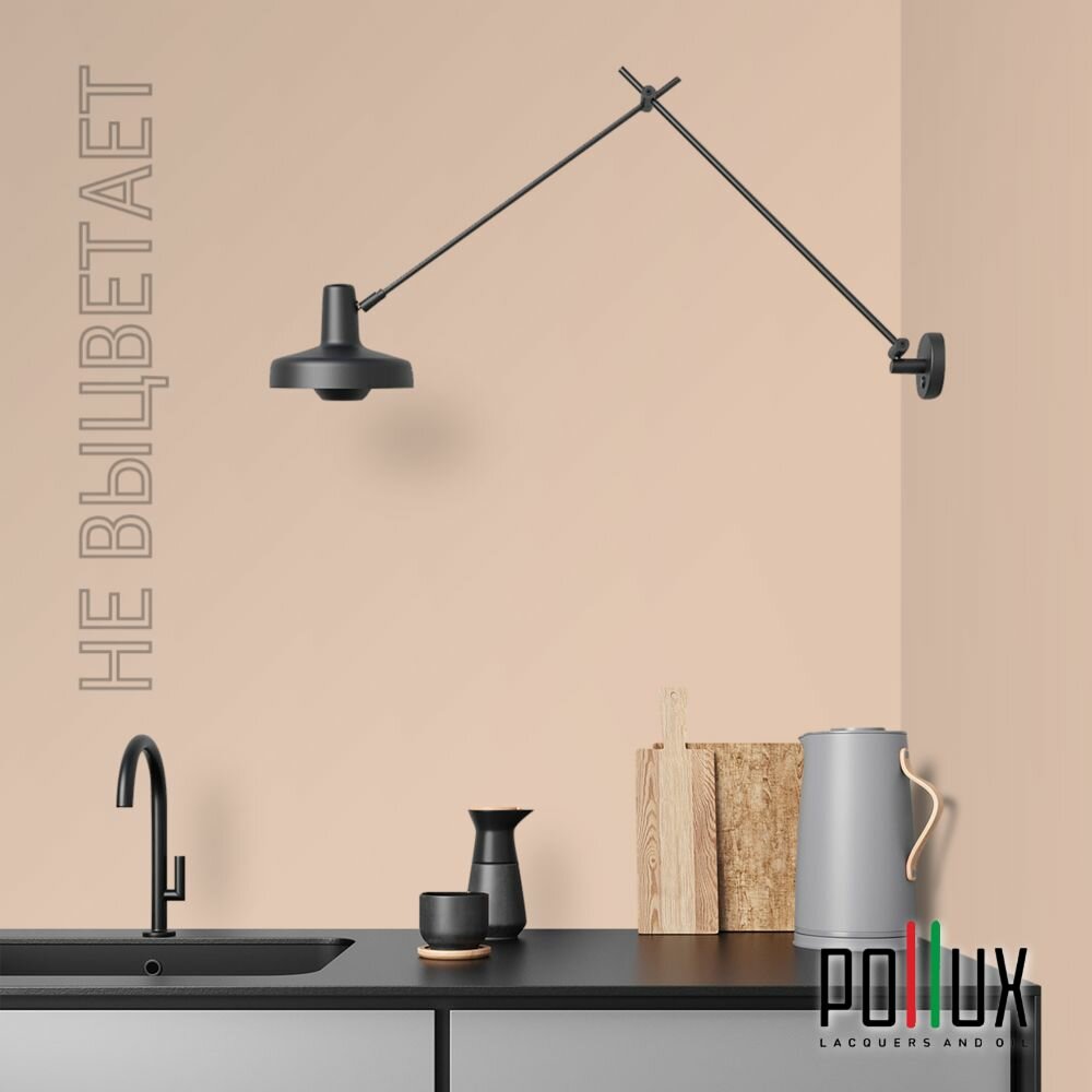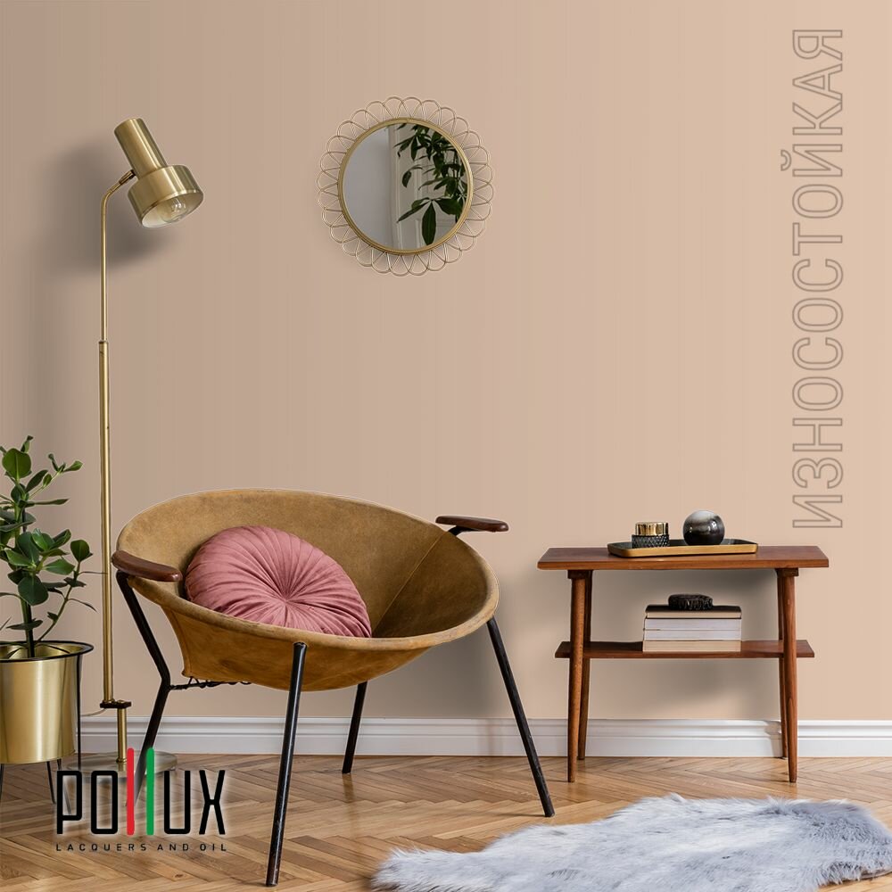 Краска моющаяся интерьерная для стен и потолков, Pollux INTERIOR без запаха, быстросохнущая, акриловая, матовое покрытие, цвет NCS S 1502-Y50R, 1л.