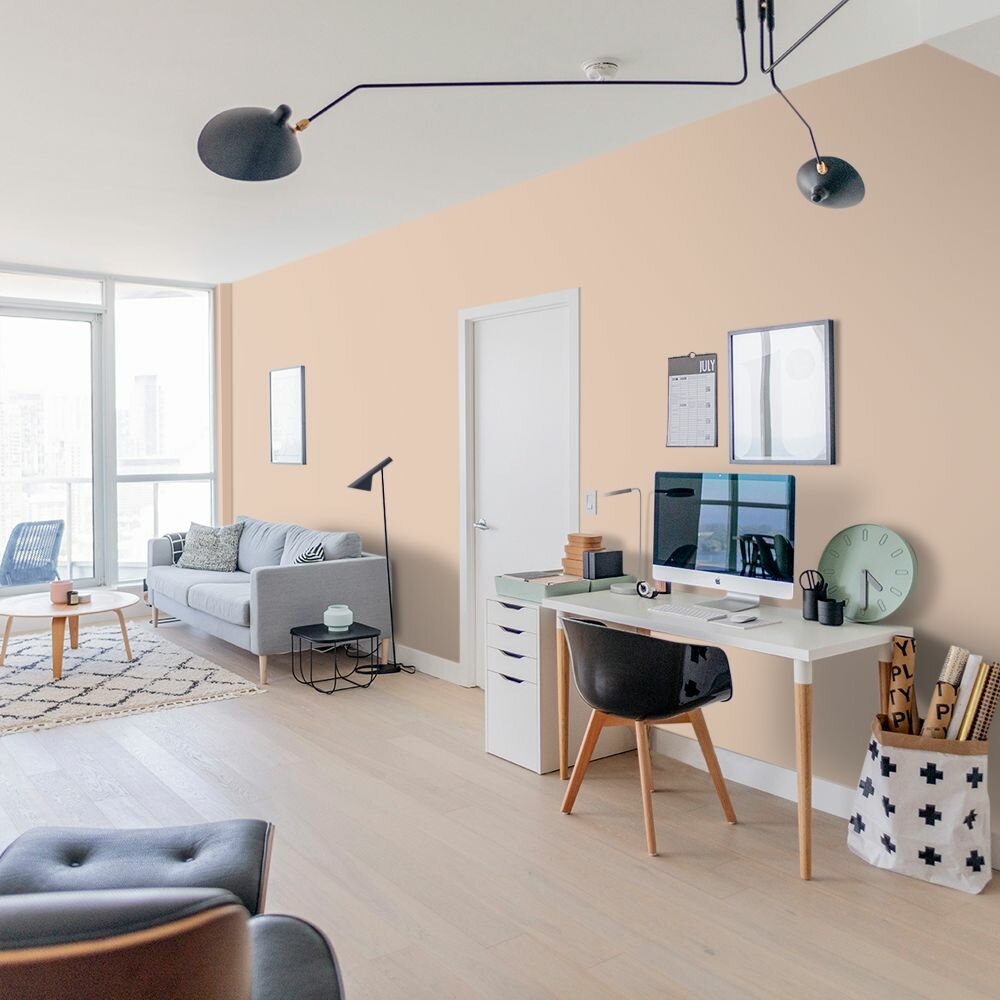 Краска моющаяся интерьерная для стен и потолков, Pollux INTERIOR без запаха, быстросохнущая, акриловая, матовое покрытие, цвет NCS S 1505-Y50R, 1л.