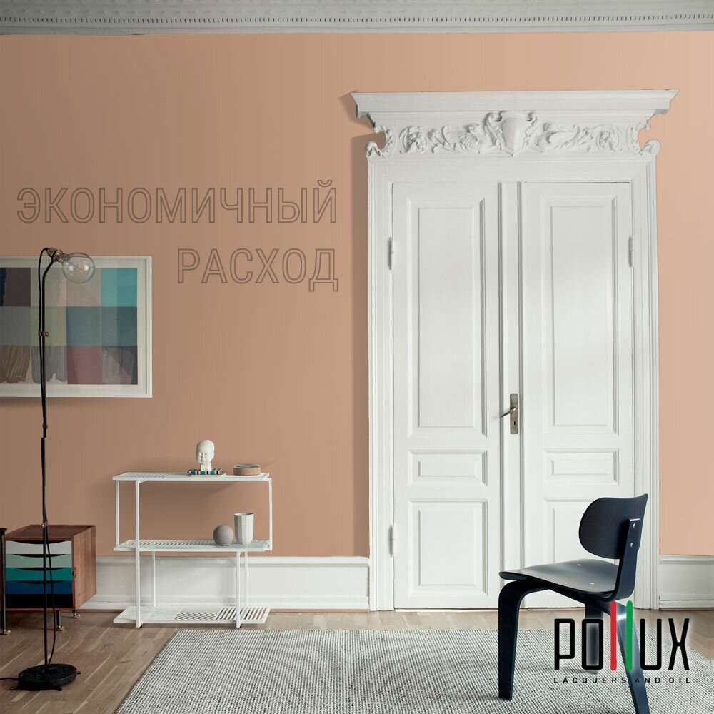 Краска моющаяся интерьерная для стен и потолков, Pollux INTERIOR без запаха, быстросохнущая, акриловая, матовое покрытие, цвет NCS S 1080-Y50R, 1л.