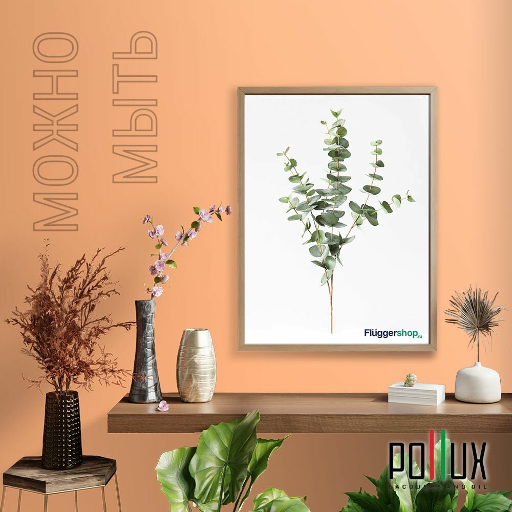 Краска моющаяся интерьерная для стен и потолков, Pollux INTERIOR без запаха, быстросохнущая, акриловая, матовое покрытие, цвет NCS S 2060-Y50R, 1л.