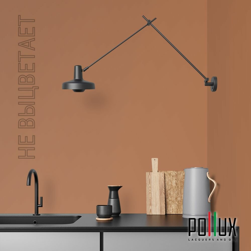 Краска моющаяся интерьерная для стен и потолков, Pollux INTERIOR без запаха, быстросохнущая, акриловая, матовое покрытие, цвет NCS S 3060-Y50R, 1л.