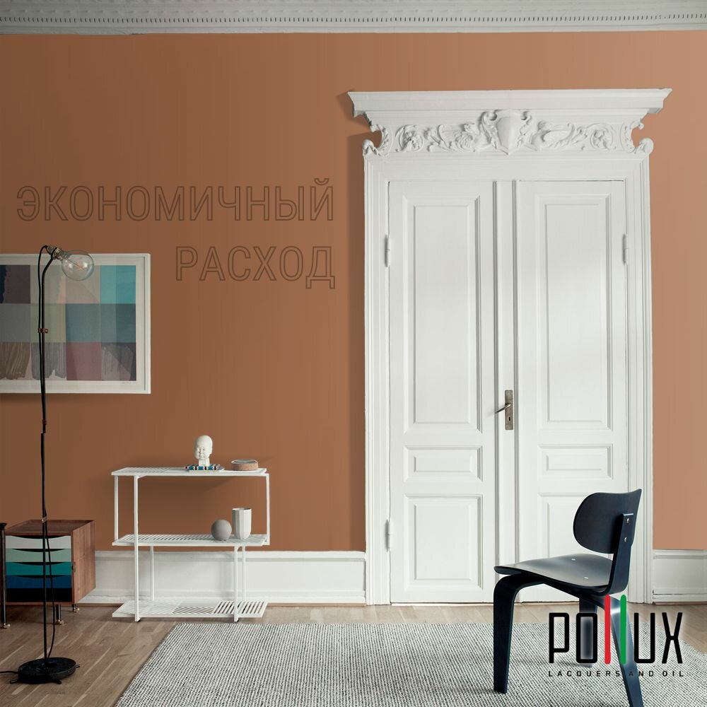Краска моющаяся интерьерная для стен и потолков, Pollux INTERIOR без запаха, быстросохнущая, акриловая, матовое покрытие, цвет NCS S 1080-Y50R, 1л.
