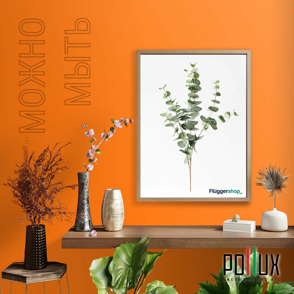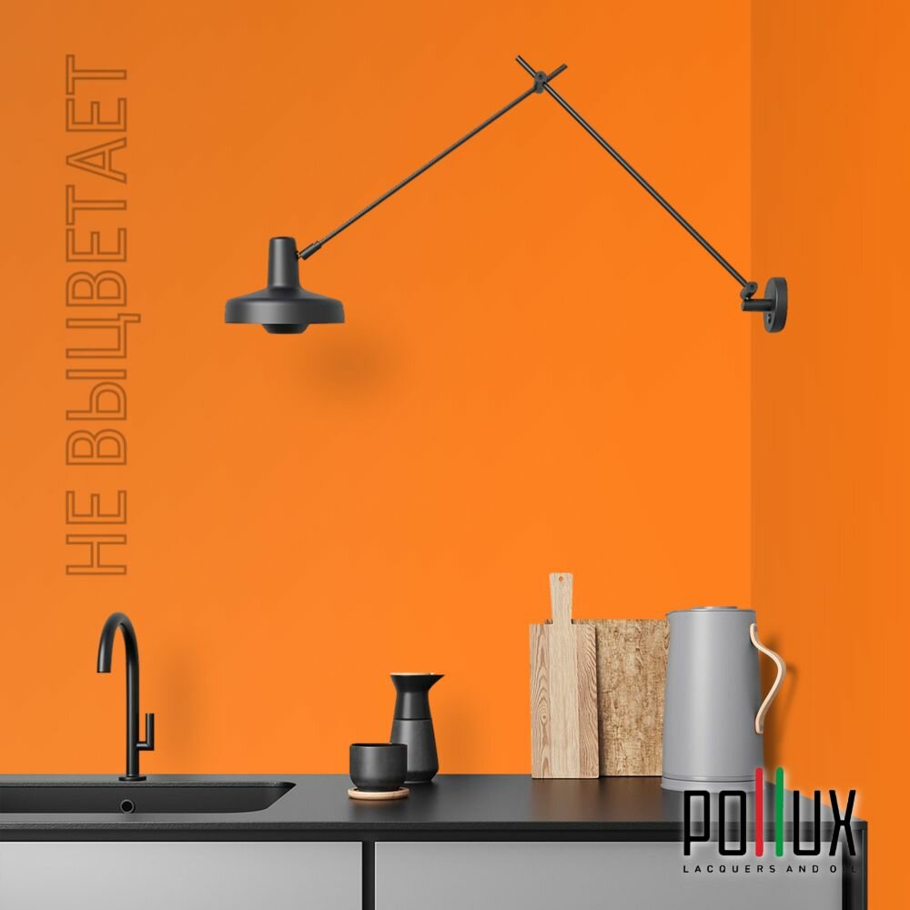 Краска моющаяся интерьерная для стен и потолков, Pollux INTERIOR без запаха, быстросохнущая, акриловая, матовое покрытие, цвет NCS S 3060-Y50R, 1л.