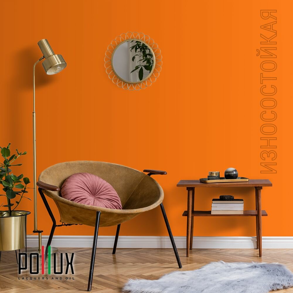 Краска моющаяся интерьерная для стен и потолков, Pollux INTERIOR без запаха, быстросохнущая, акриловая, матовое покрытие, цвет NCS S 0585-Y50R, 1л.
