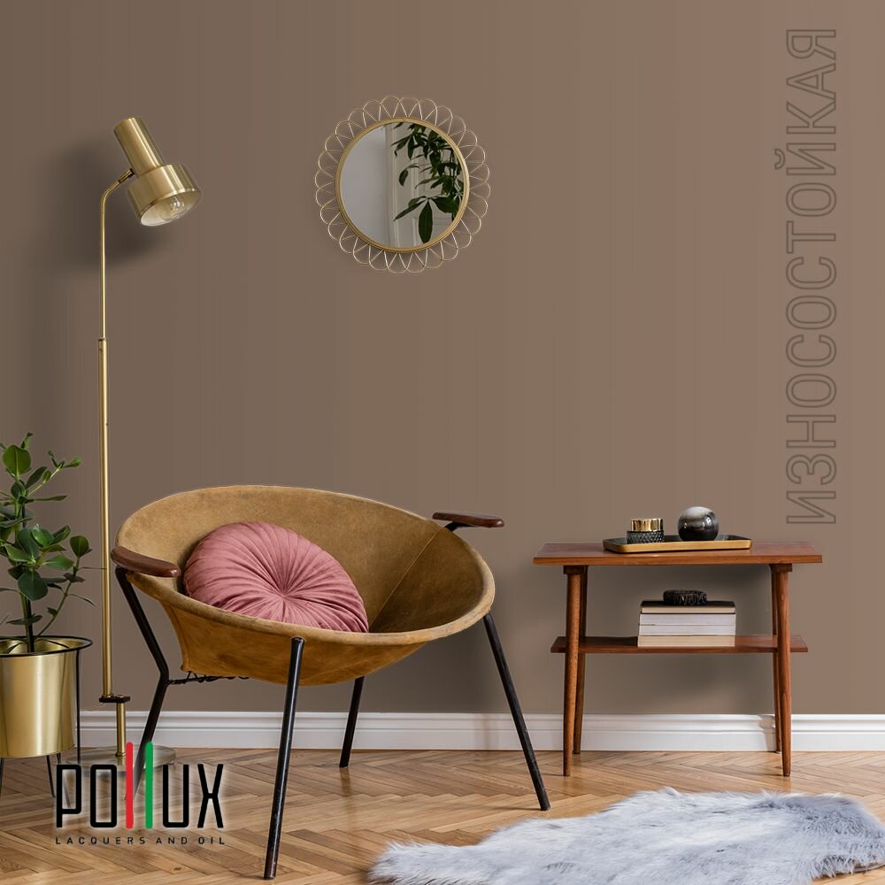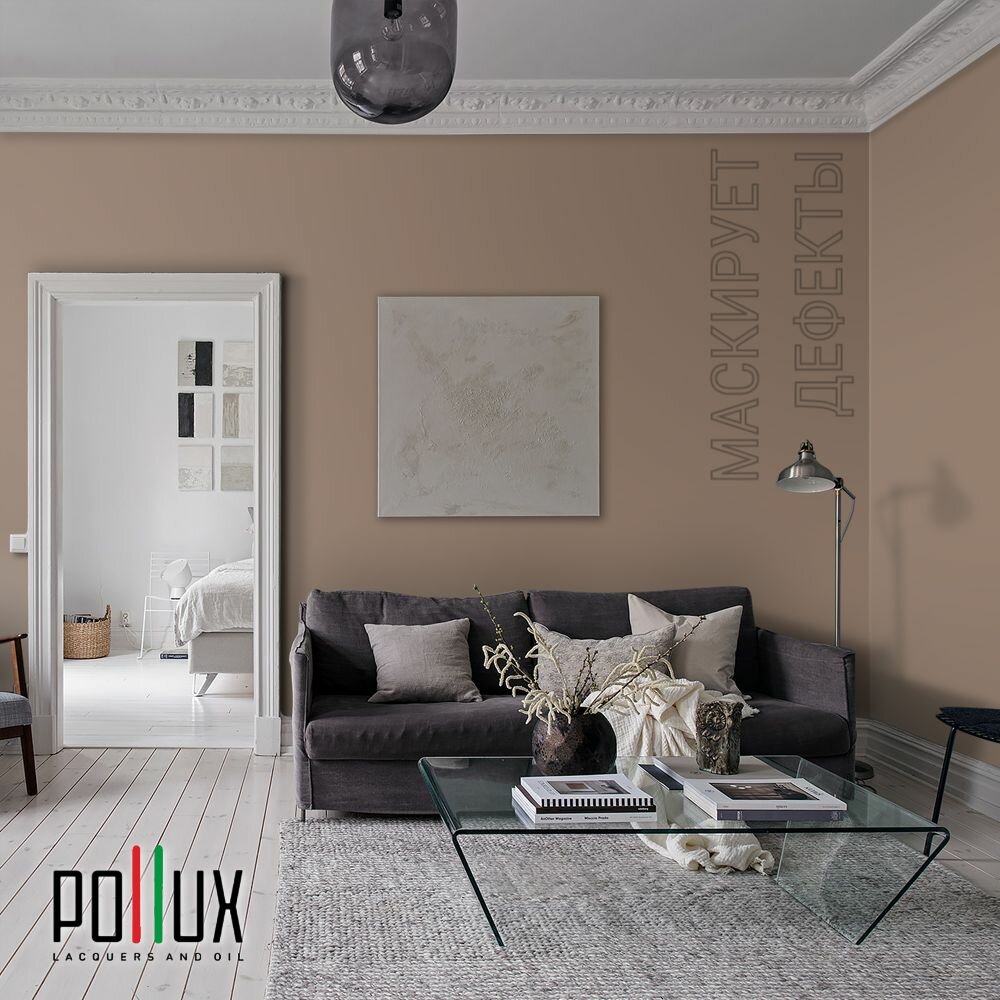 Краска моющаяся интерьерная для стен и потолков, Pollux INTERIOR без запаха, быстросохнущая, акриловая, матовое покрытие, цвет NCS S 8010-Y50R, 1л.