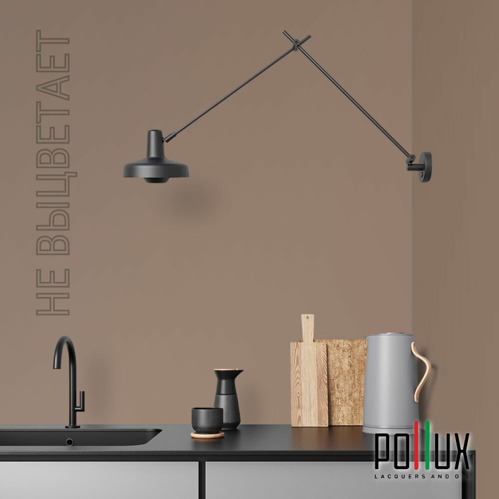 Краска моющаяся интерьерная для стен и потолков, Pollux INTERIOR без запаха, быстросохнущая, акриловая, матовое покрытие, цвет NCS S 7010-Y50R, 1л.