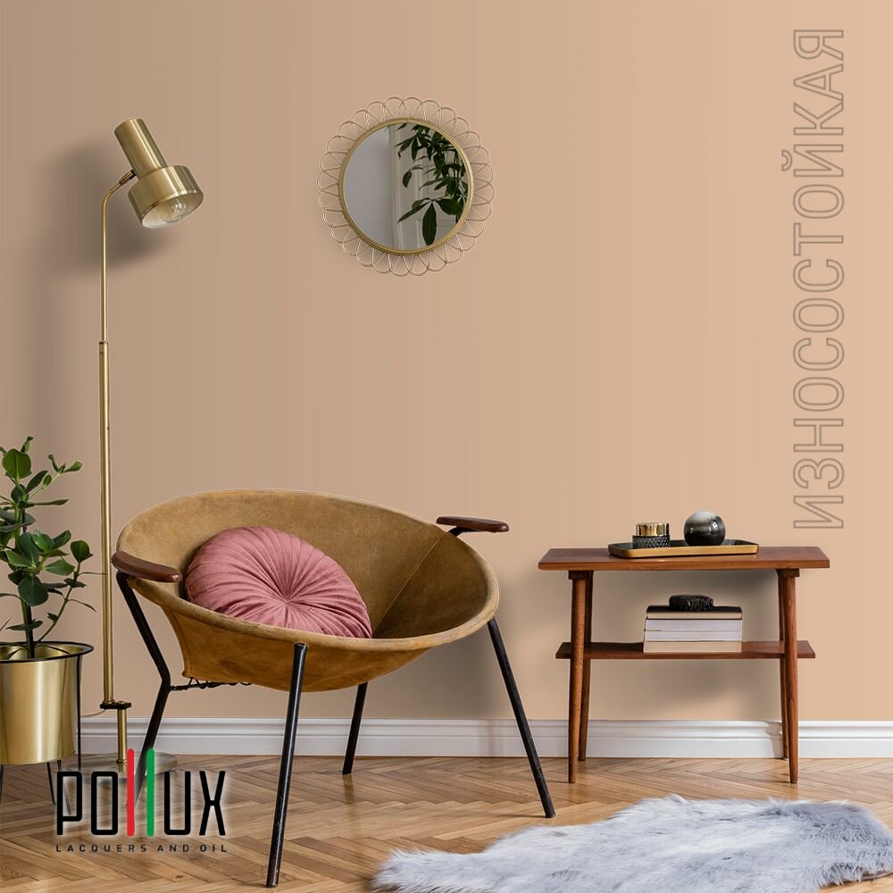 Краска моющаяся интерьерная для стен и потолков, Pollux INTERIOR без запаха, быстросохнущая, акриловая, матовое покрытие, цвет NCS S 0585-Y50R, 1л.