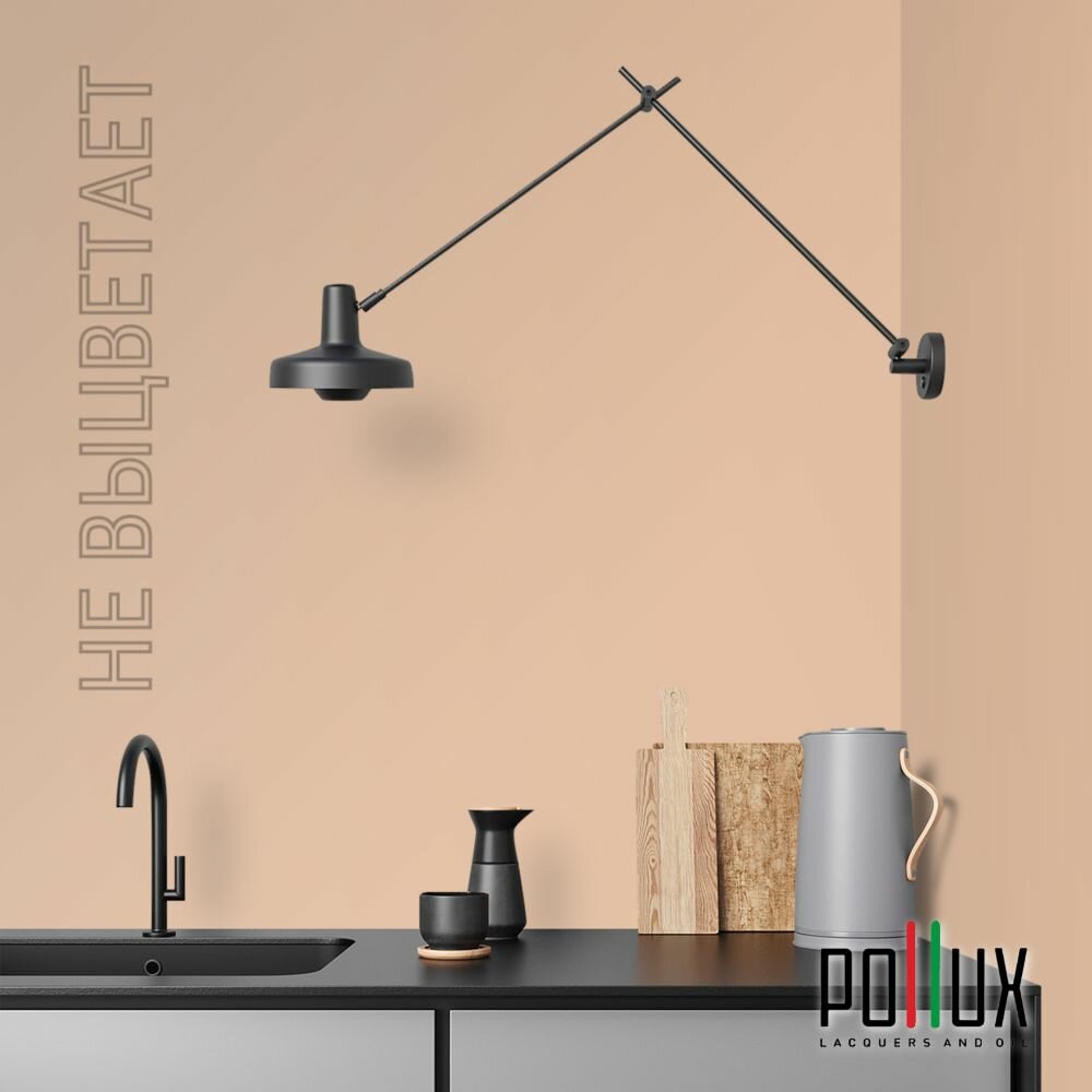 Краска моющаяся интерьерная для стен и потолков, Pollux INTERIOR без запаха, быстросохнущая, акриловая, матовое покрытие, цвет NCS S 1502-Y50R, 1л.