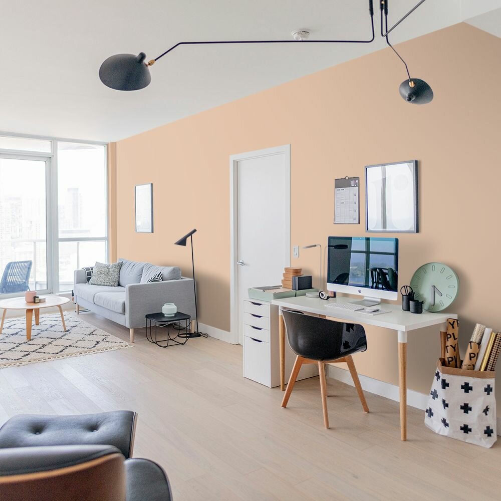 Краска моющаяся интерьерная для стен и потолков, Pollux INTERIOR без запаха, быстросохнущая, акриловая, матовое покрытие, цвет NCS S 0570-Y50R, 1л.