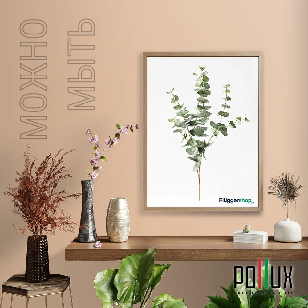 Краска моющаяся интерьерная для стен и потолков, Pollux INTERIOR без запаха, быстросохнущая, акриловая, матовое покрытие, цвет NCS S 3060-Y50R, 1л.