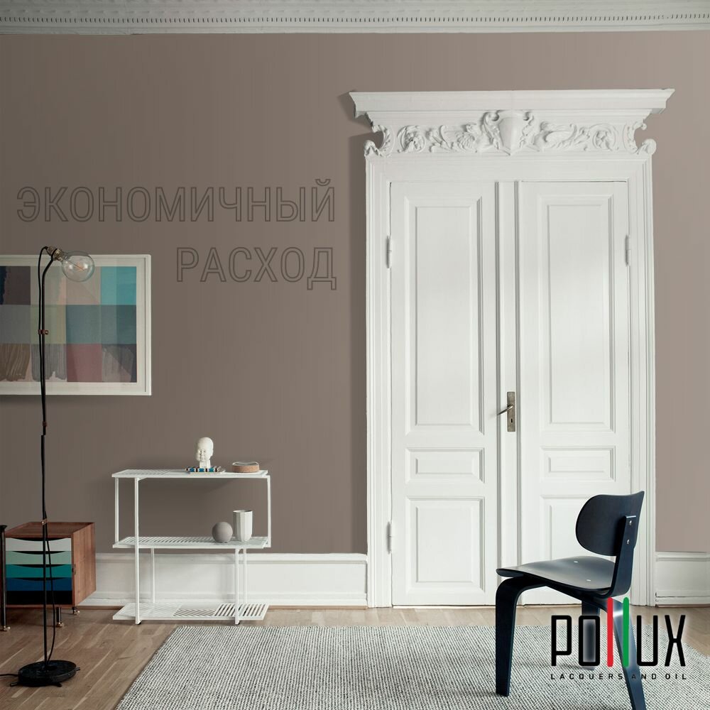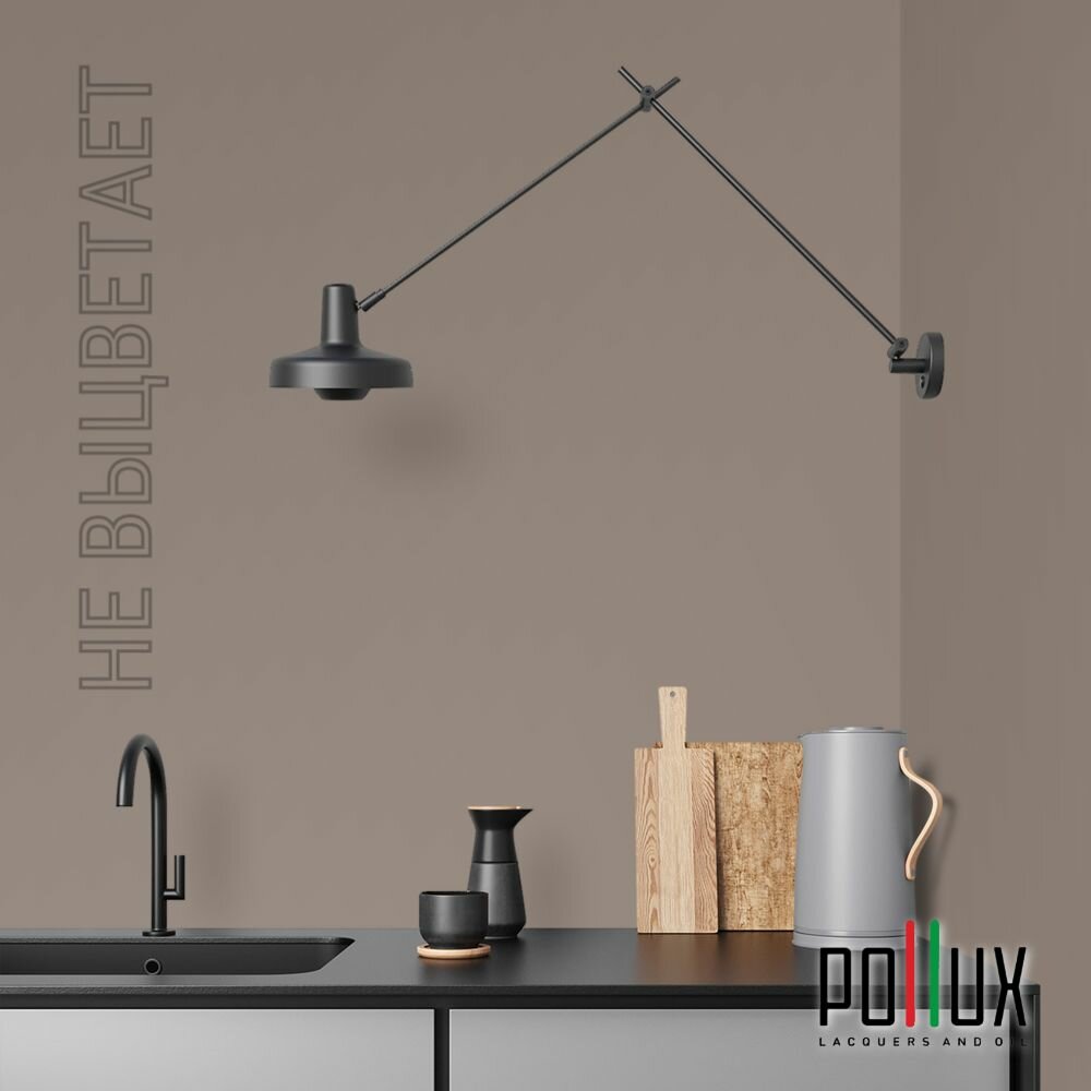 Краска моющаяся интерьерная для стен и потолков, Pollux INTERIOR без запаха, быстросохнущая, акриловая, матовое покрытие, цвет NCS S 7010-Y50R, 1л.
