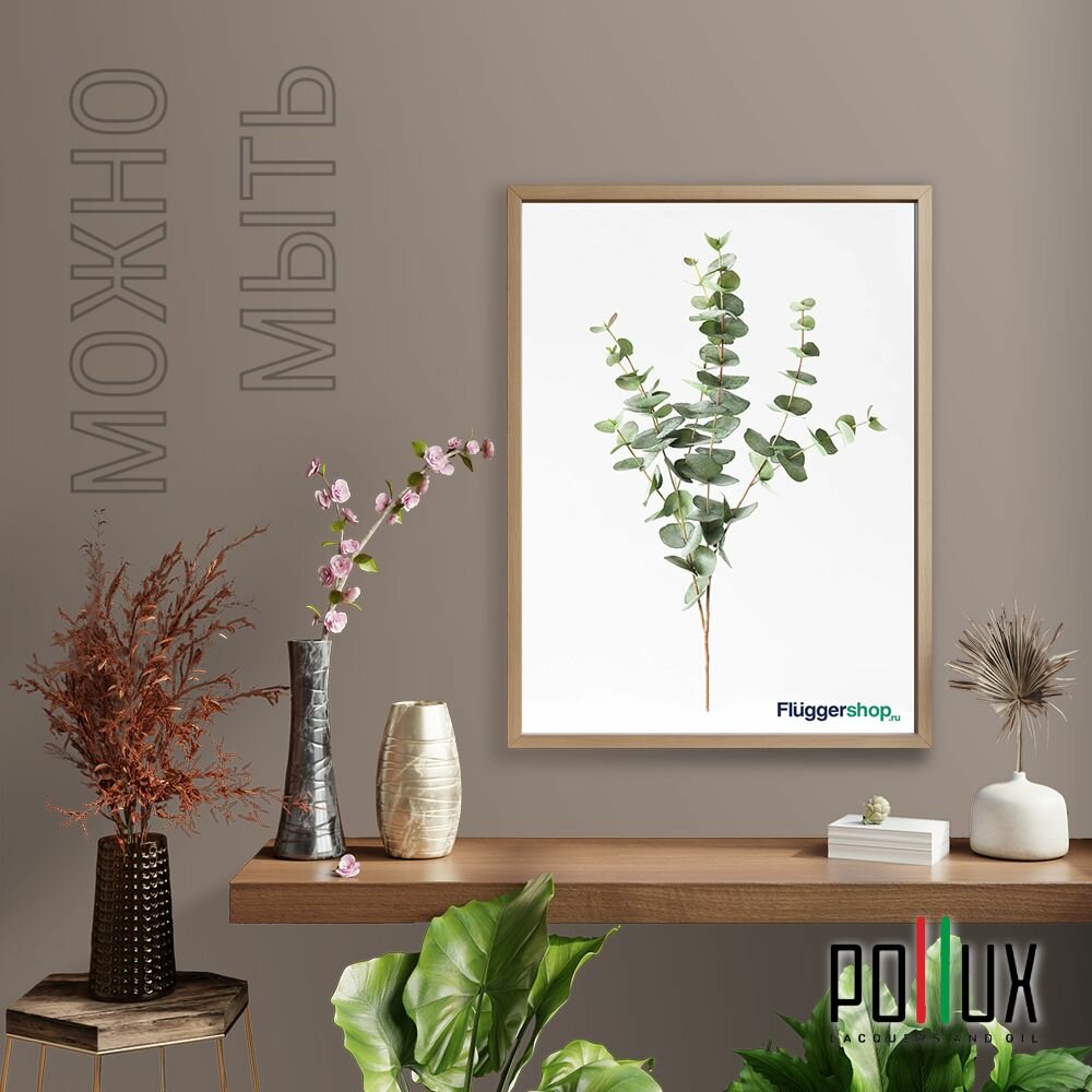Краска моющаяся интерьерная для стен и потолков, Pollux INTERIOR без запаха, быстросохнущая, акриловая, матовое покрытие, цвет NCS S 7005-Y50R, 1л.