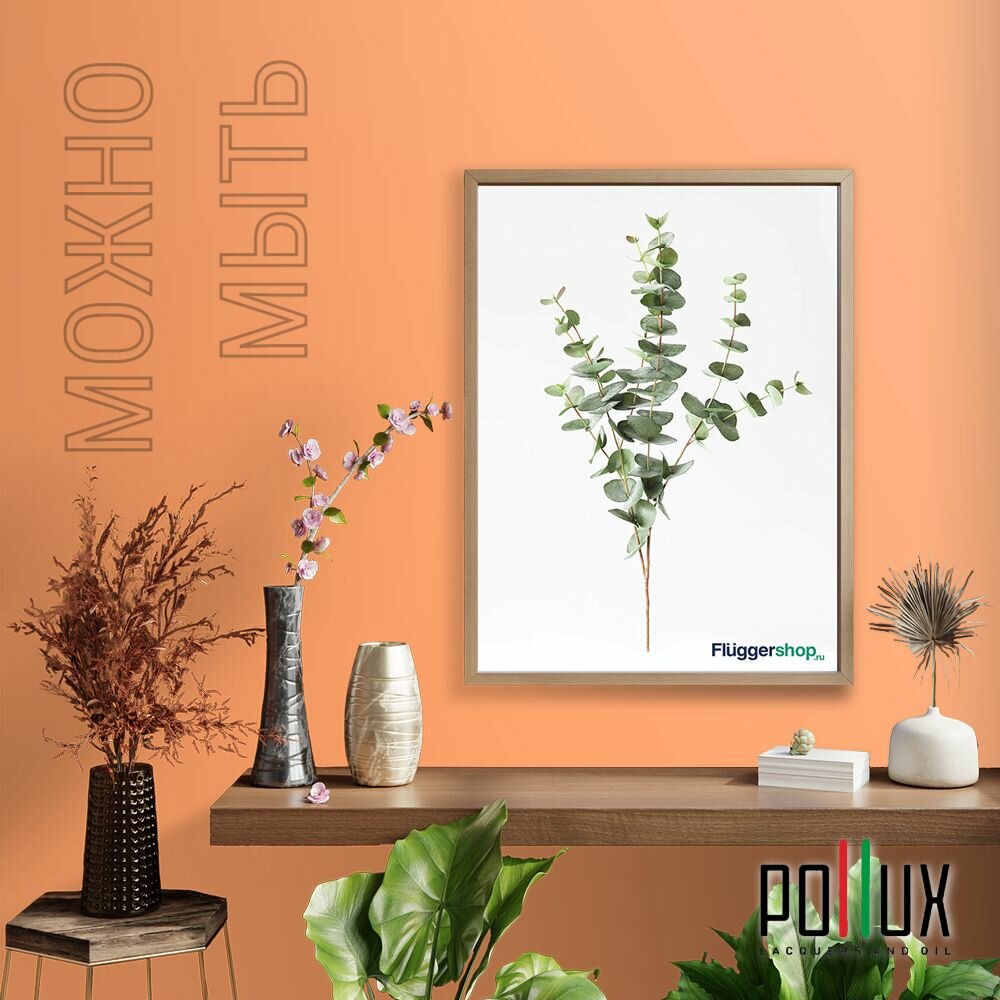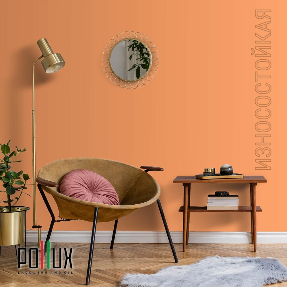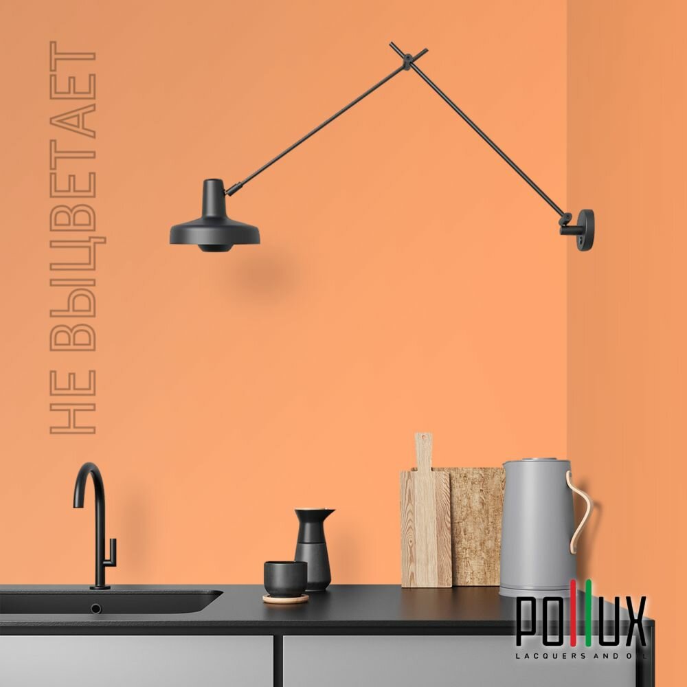 Краска моющаяся интерьерная для стен и потолков, Pollux INTERIOR без запаха, быстросохнущая, акриловая, матовое покрытие, цвет NCS S 3060-Y50R, 1л.