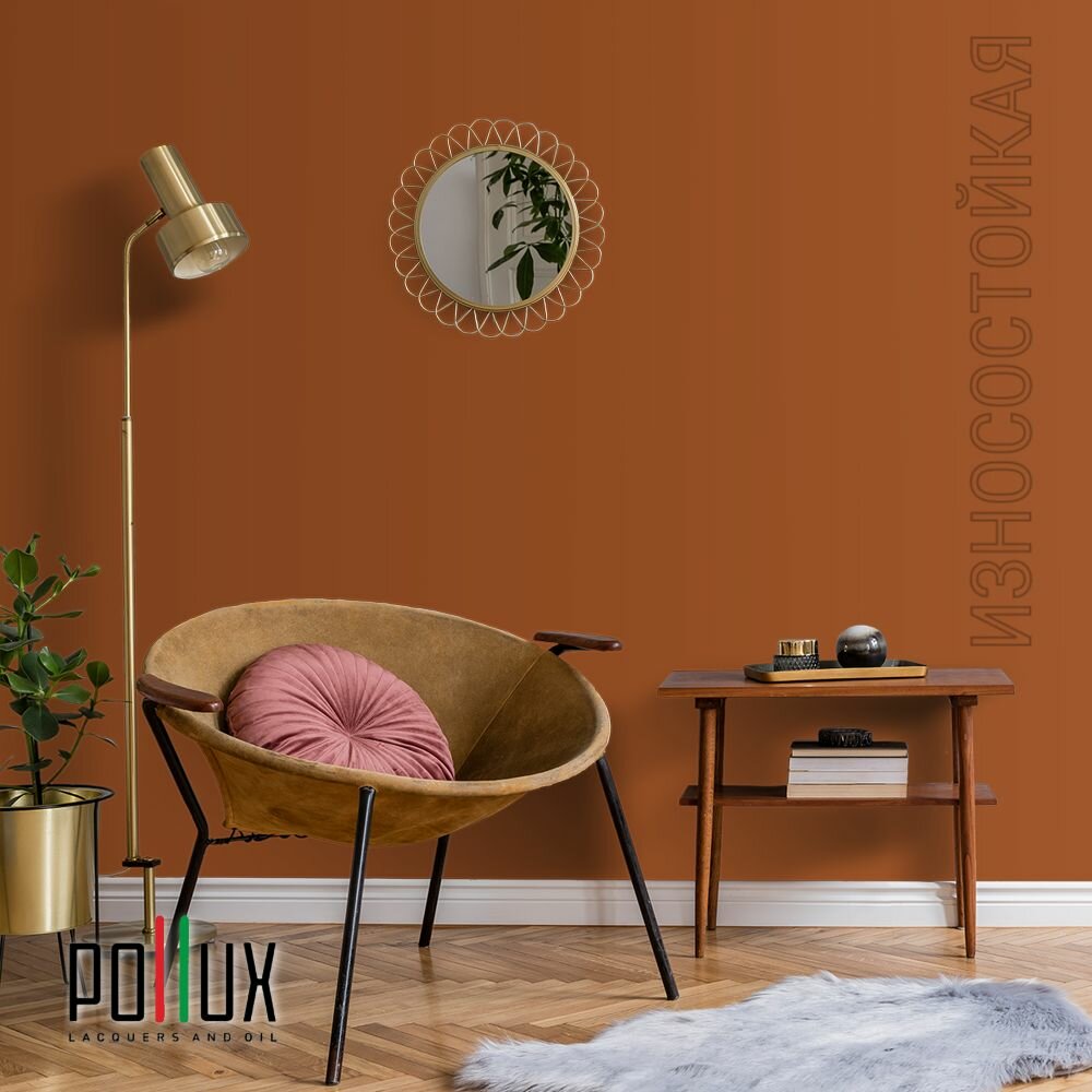 Краска моющаяся интерьерная для стен и потолков, Pollux INTERIOR без запаха, быстросохнущая, акриловая, матовое покрытие, цвет NCS S 1060-Y50R, 1л.