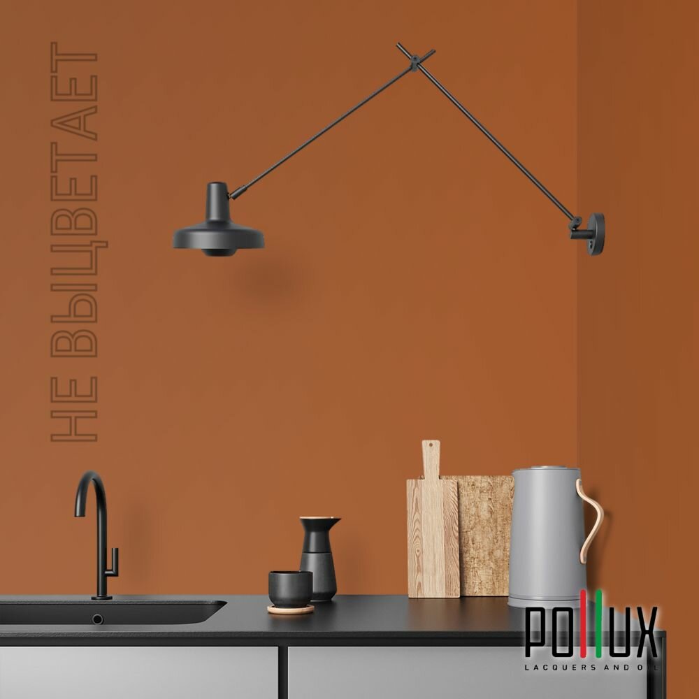 Краска моющаяся интерьерная для стен и потолков, Pollux INTERIOR без запаха, быстросохнущая, акриловая, матовое покрытие, цвет NCS S 3060-Y50R, 1л.