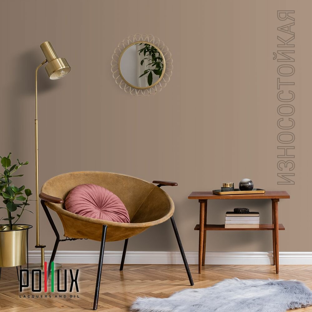 Краска моющаяся интерьерная для стен и потолков, Pollux INTERIOR без запаха, быстросохнущая, акриловая, матовое покрытие, цвет NCS S 8010-Y50R, 1л.