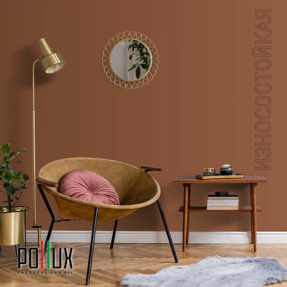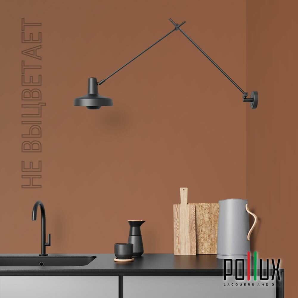 Краска моющаяся интерьерная для стен и потолков, Pollux INTERIOR без запаха, быстросохнущая, акриловая, матовое покрытие, цвет NCS S 3060-Y50R, 1л.