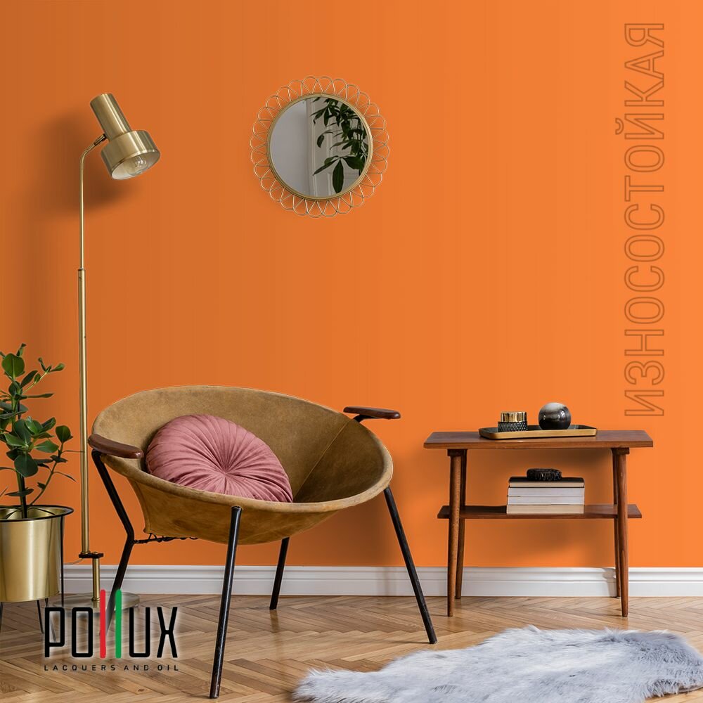 Краска моющаяся интерьерная для стен и потолков, Pollux INTERIOR без запаха, быстросохнущая, акриловая, матовое покрытие, цвет NCS S 1060-Y50R, 1л.