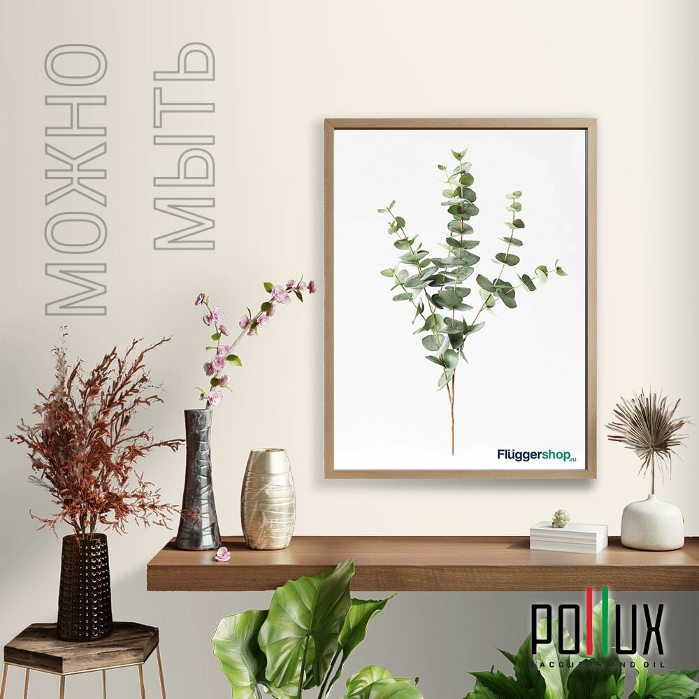 Краска моющаяся интерьерная для стен и потолков, Pollux INTERIOR без запаха, быстросохнущая, акриловая, матовое покрытие, цвет NCS S 5005-Y50R, 1л.