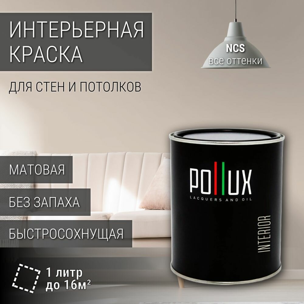 Краска моющаяся интерьерная для стен и потолков, Pollux INTERIOR без запаха, быстросохнущая, акриловая, матовое покрытие, цвет NCS S 7020-Y50R, 1л.